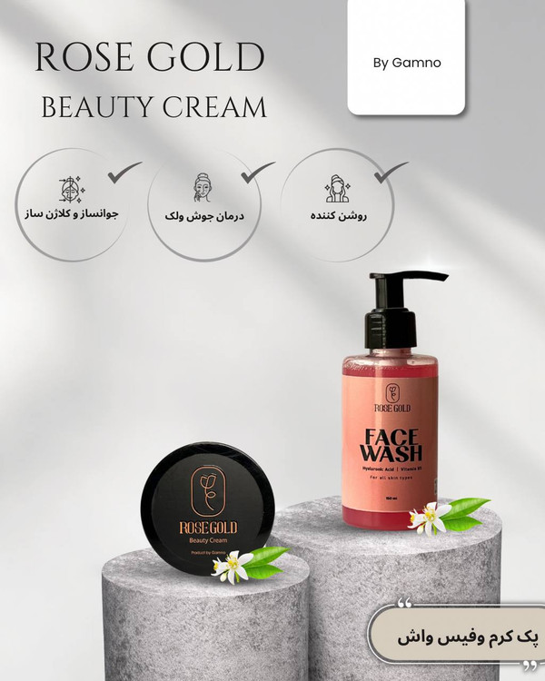 این پک ترکیبی قدرتمند شامل کرم «رز گلد» و فیس واش (ژل شستوشو) تخصصی بوده که با فرمولاسیونی گیاهی و مراقبتی، بهطور هدفمند لکها، جوشها و تیرگیهای پوست را درمان میکند